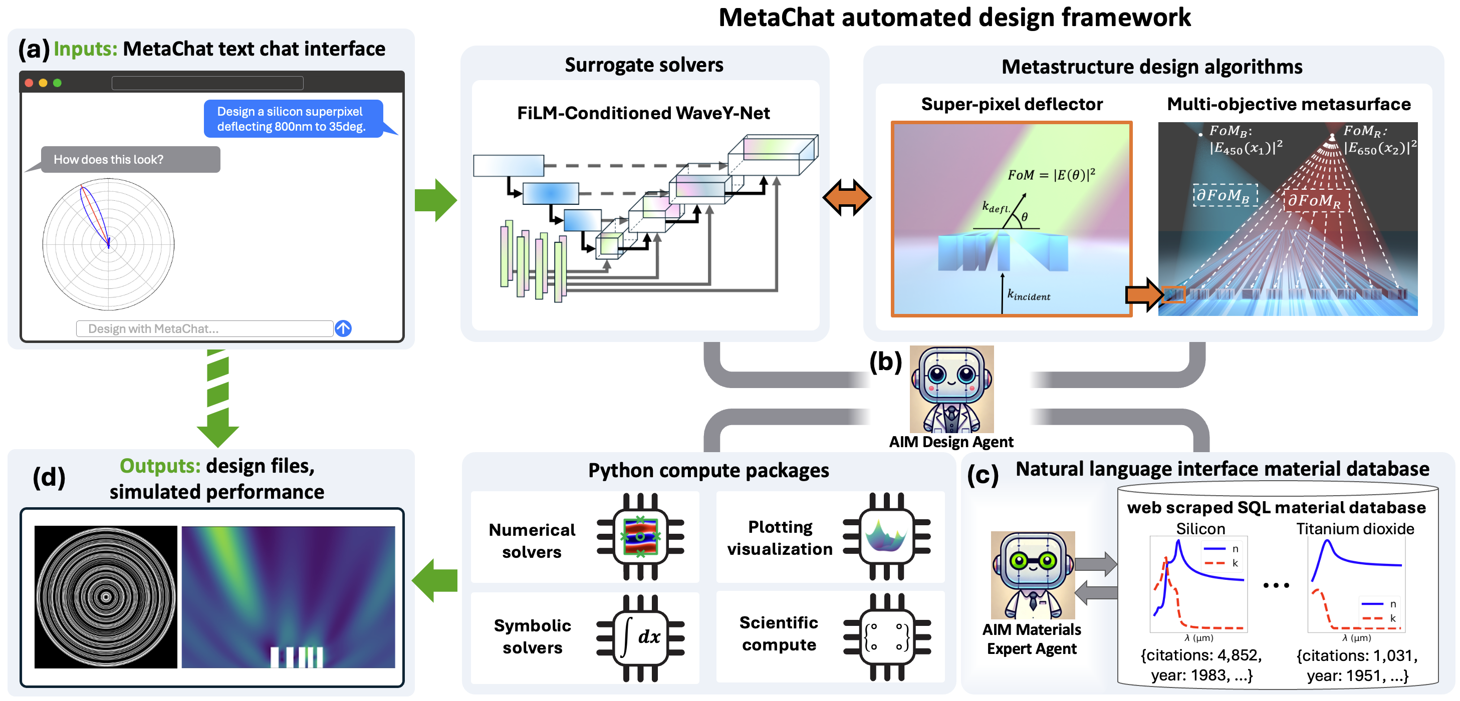We present MetaChat, a multi-agentic computer-aided design framework that combines agency with millisecond-speed deep-learning surrogate solvers to automate and accelerate photonics design. MetaChat performs complex freeform design tasks in nearly real-time, rather than the days-to-weeks required with conventional methods.